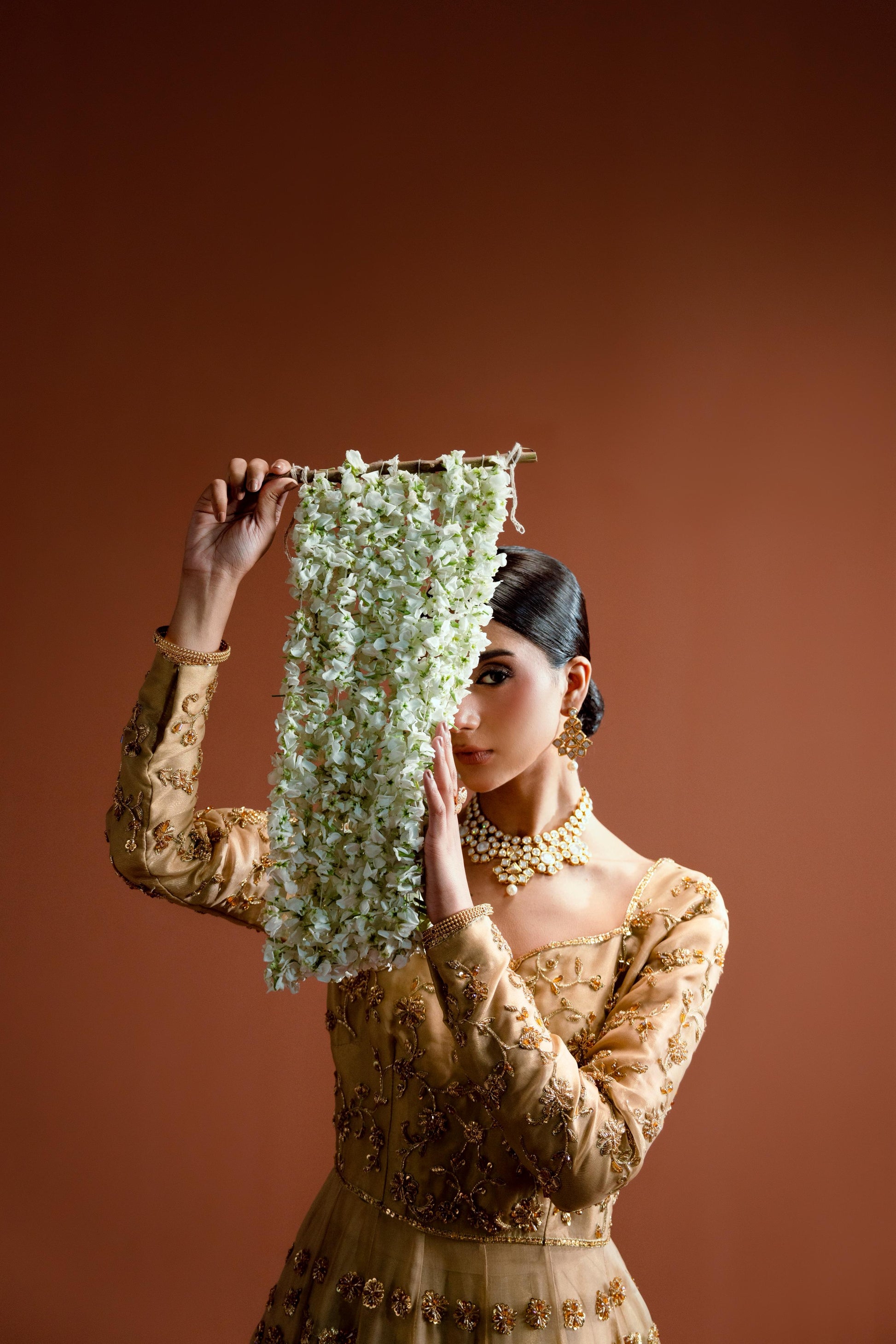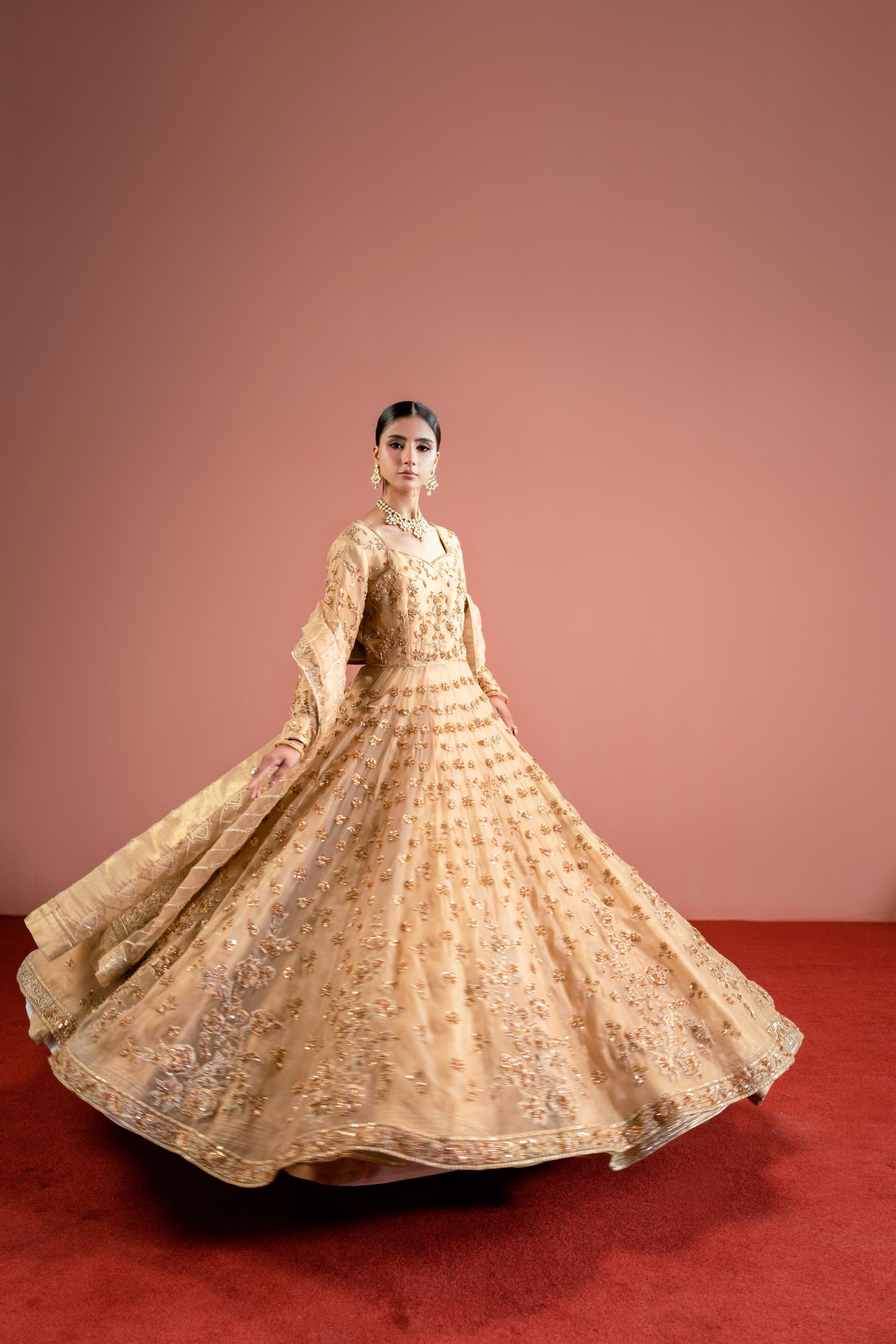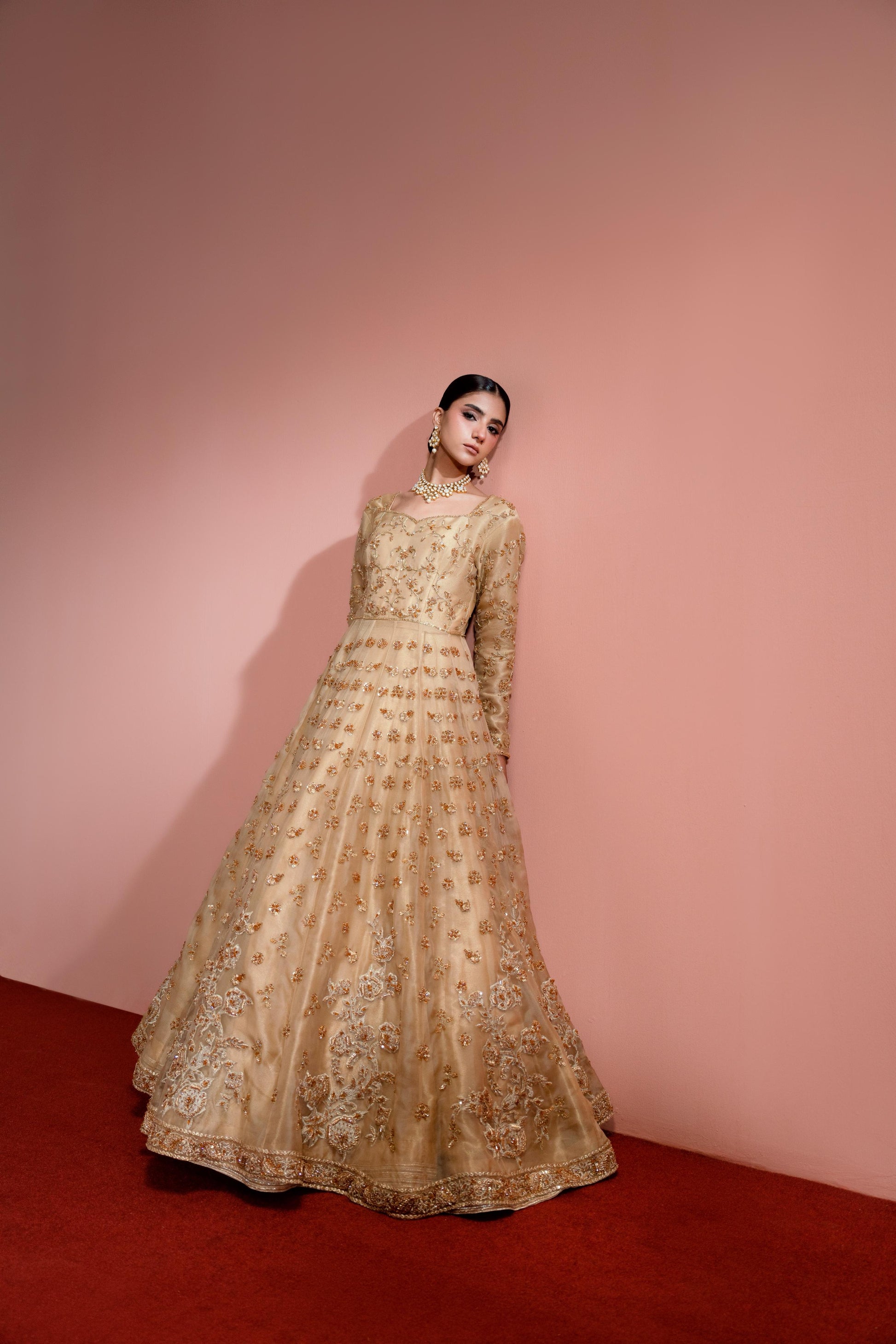 Radiating magnificence. Khawab is a poetic balance of fluid drape and structured tailoring. It makes a breathtaking statement with sensual fabrics. Crafted on delicate organza with richly embroidered and handcrafted embellishments exudes an ethereal fluidity. The ensemble is further elevated with embroidered organza dupatta creates an effortlessly graceful profile making it perfect outfit for your festivities.